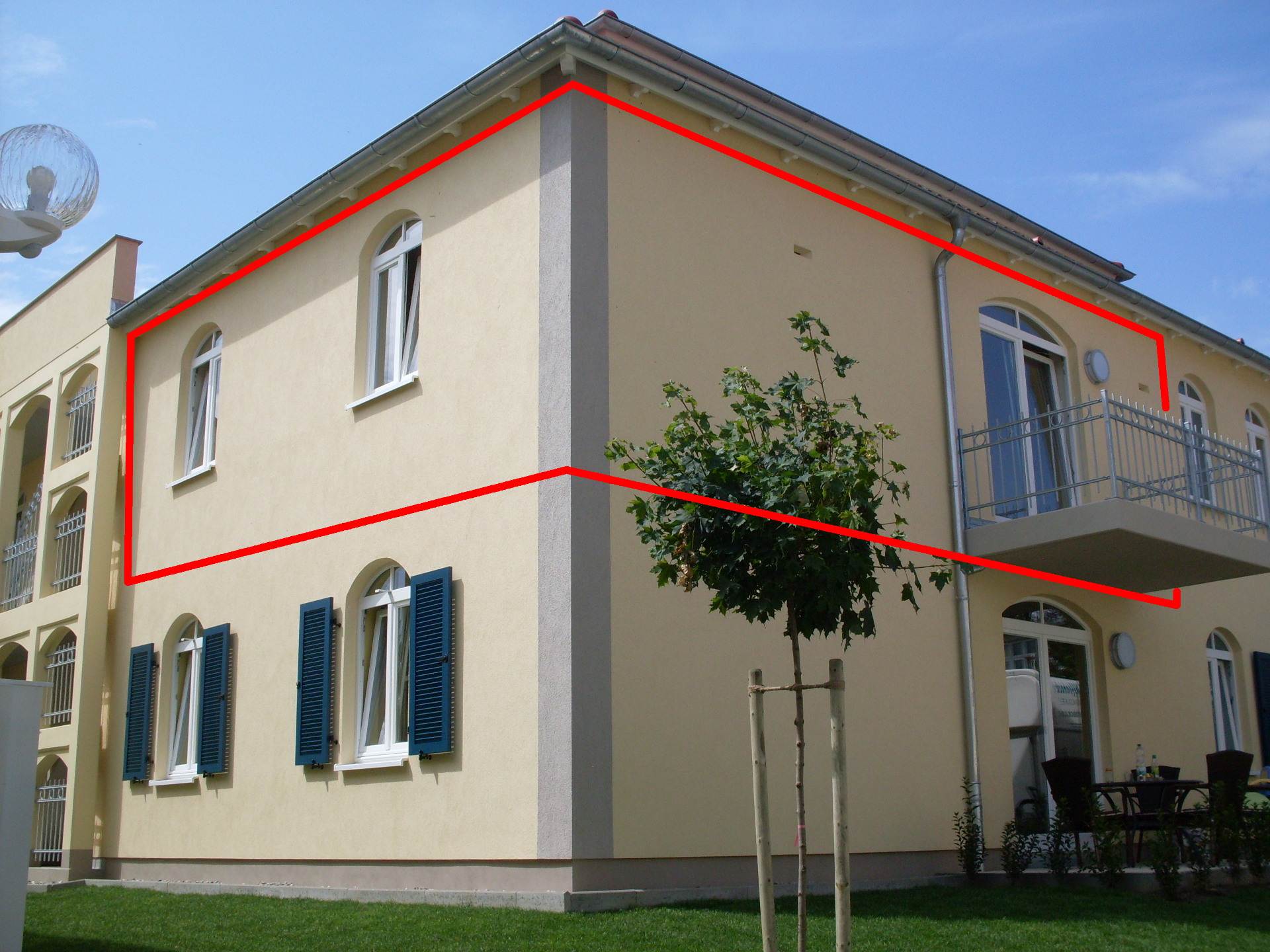 Die Ferienwohnung Strandglück befindet sich im ersten Obergeschoss des Vorderhauses.