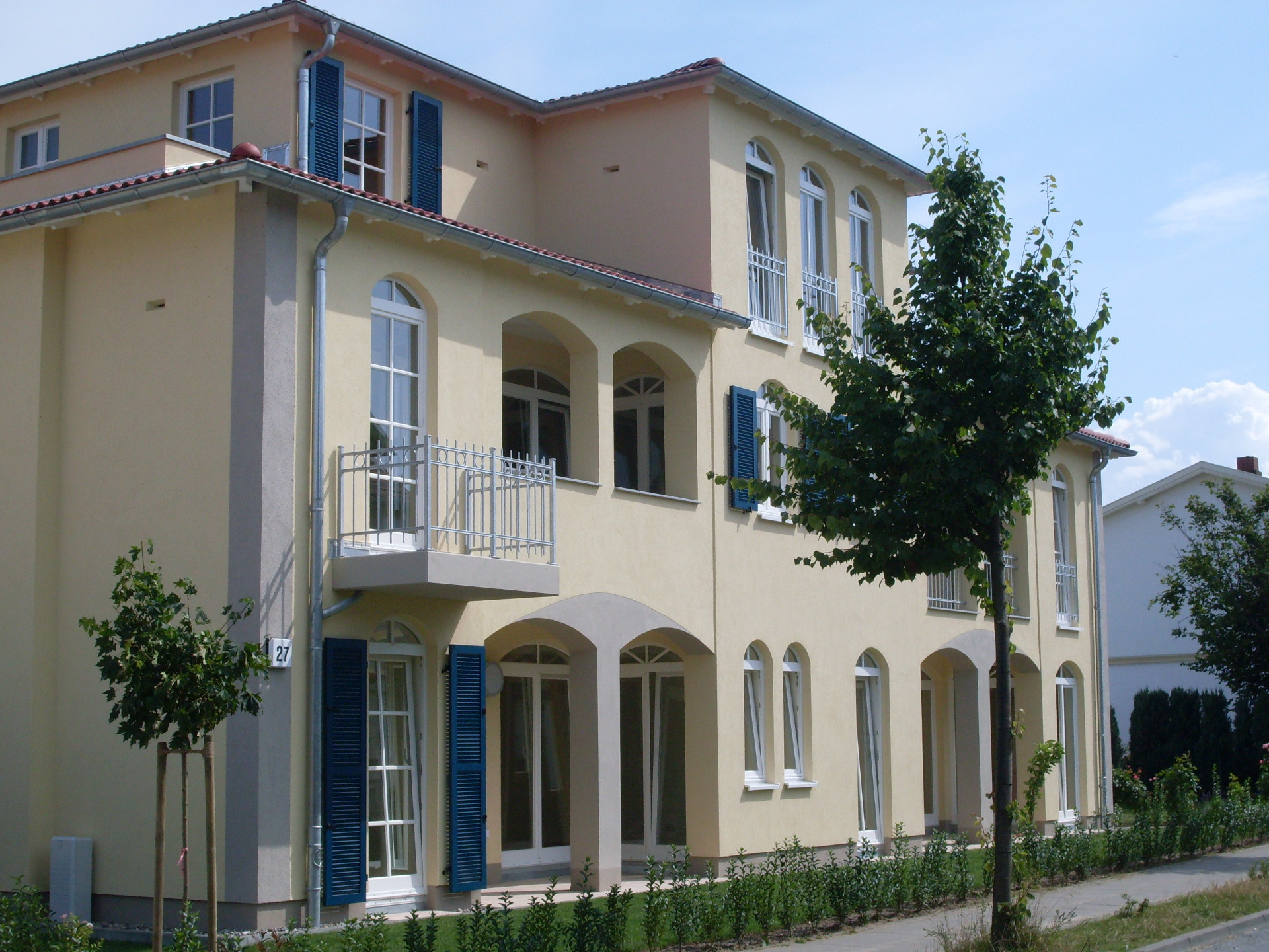 Die Villa Strandkuss wurde im Jahre 2009 im Ostseebad Kühlungsborn in der Hermann-Häcker-Str. 27, nur drei Minuten vom langen weißen Sandstrand entfernt, errichtet. In dieser einzigartigen Lage entstanden 13 Ferienwohnungen in zwei freistehenden Gebäuden, deren Architektur mit ihren klassisch anmutenden Rundbögen, Terrassen und Farbgebungen ein schönes Beispiel der traditionellen Bäderarchitektur darstellt.